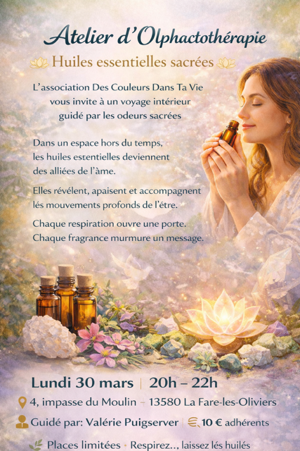 Dans un espace hors du temps, les huiles essentielles deviennent des alliées de l’âme. Elles révèlent, apaisent et accompagnent les mouvements profonds de l’être. Chaque respiration ouvre une porte. Chaque fragrance murmure un message. C’est un temps de reconnexion, d’écoute subtile et de présence à soi. Un temps pour ralentir, respirer, ressentir… Les huiles essentielles deviennent des messagères